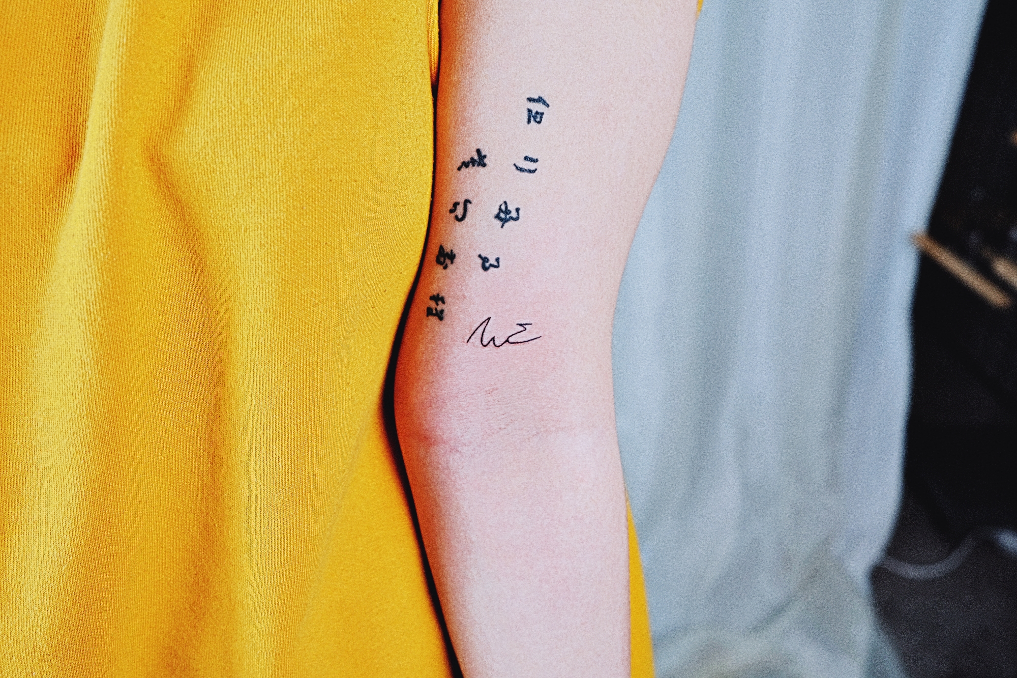 실제로도 나이드신분들도 많이 하십니다. 첫타투에 레터링이 고민이시라면 한번쯤 생각해보세요!